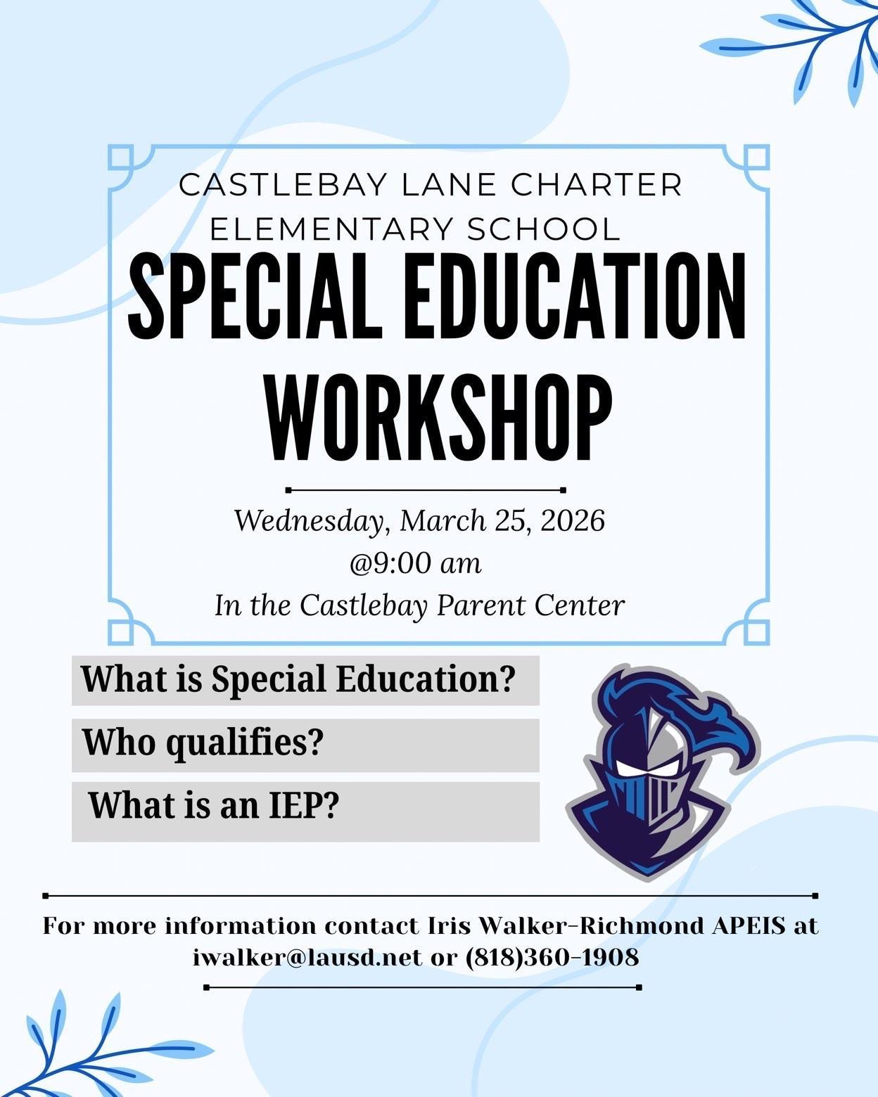 Special Education Workshop - 9:00 AM Parent Center